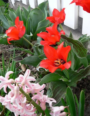 Spring came in one day here. Seriously. It has been cold and windy for weeks (MONTHS!). I went outside today and found beautiful surprise flowers in my yard!