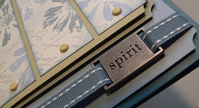 Accessories: metal clip (SU), ribbon slide (Making Memories), word window punch, small oval punch, sponge dauber, ticket corner punch, Blue Bayou stitched ribbon