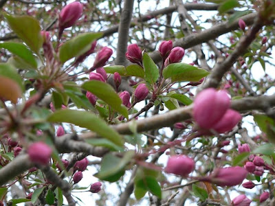 The best part of all is that my crabapple trees are going to bloom this year!! Christmas and New Year's Eve 2006 we had a terrible ice storm with 4 inches of ice on everything (see below for a look at that- the picture is of my crabapple trees in January 2007). Anyway, the next spring (2007) they didn't bloom because the ice had messed up the growing cycle.