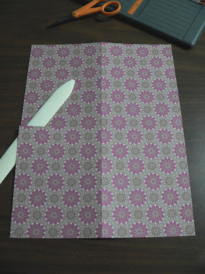 Ok, here we go. Start with a double-sided 8 1/2 x 11 piece of cardstock. I chose Stampin' Up's beautiful Berry Bliss (for those that haven't seen this, it is a gorgeous combination of pinks and browns - and you would never know that from these pictures!).