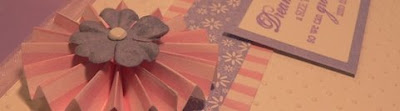 Accessories: pink brads by CTMH, pink grosgrain and celery organdy ribbon, slit punch, ticket corner punch, large and small oval punches