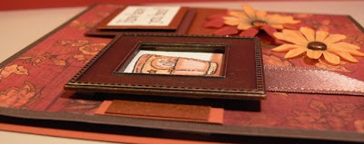 Accessories: silk flowers (The Paper Studio), antique bronze frame (Portafolio), big brads (The Paper Studio), Chocolate Chip Satin ribbon (retired SU!)