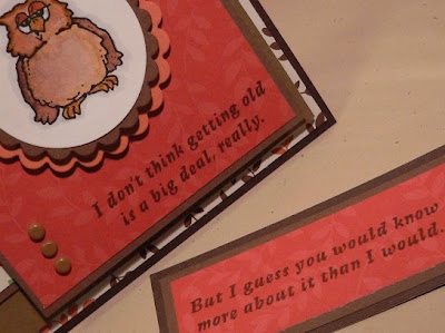 It's perfect for my husband, who is older than I am. I may just have to save this for his birthday in February! Then I would really be ahead in my card making! I probably wouldn't know where I put it, though, so I suppose I will send it to someone else and make a new one when February rolls around!