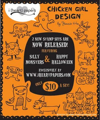 These cute images are from a new release by Chicken Girl Design Stamps, by Jannie Ho, available exclusively at i {heart} papers, along with the Nestabilities by Spellbinders. This set is called Happy Halloween!