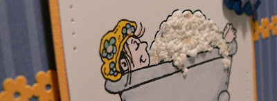 While I wait patiently for my new Hambo Stamps to arrive, I wanted to show you one of my favorite images. This Tub Lady (1717) looks so content and relaxed. I could use a dose of that, couldn't you?Her bubble bath is overflowing with Liquid Applique (she must be a stamper!), and a little glitter is added for bubble sparkle. I think she is waiting for her new Hambo Stamps to arrive! Check out all the new designs HERE. There is something for everyone!