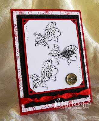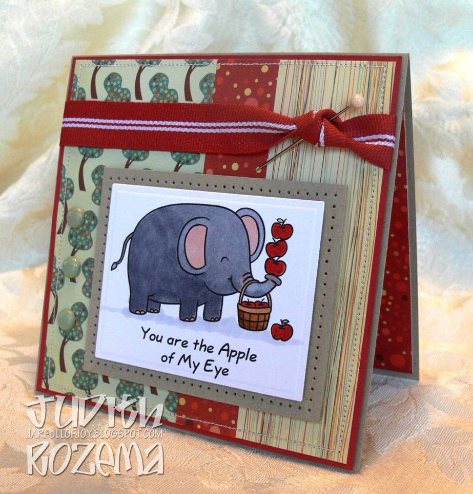 I made this for today's Splitcoast Ways To Use It Challenge: A Banner Day. I don't have any banner stamps, so just made one and added buttons. I printed my image on Copic Blending Cardstock and colored it with Copic markers. Love this cute little guy! This image and three others are available in the September Collection by Chicken Girl Designs: