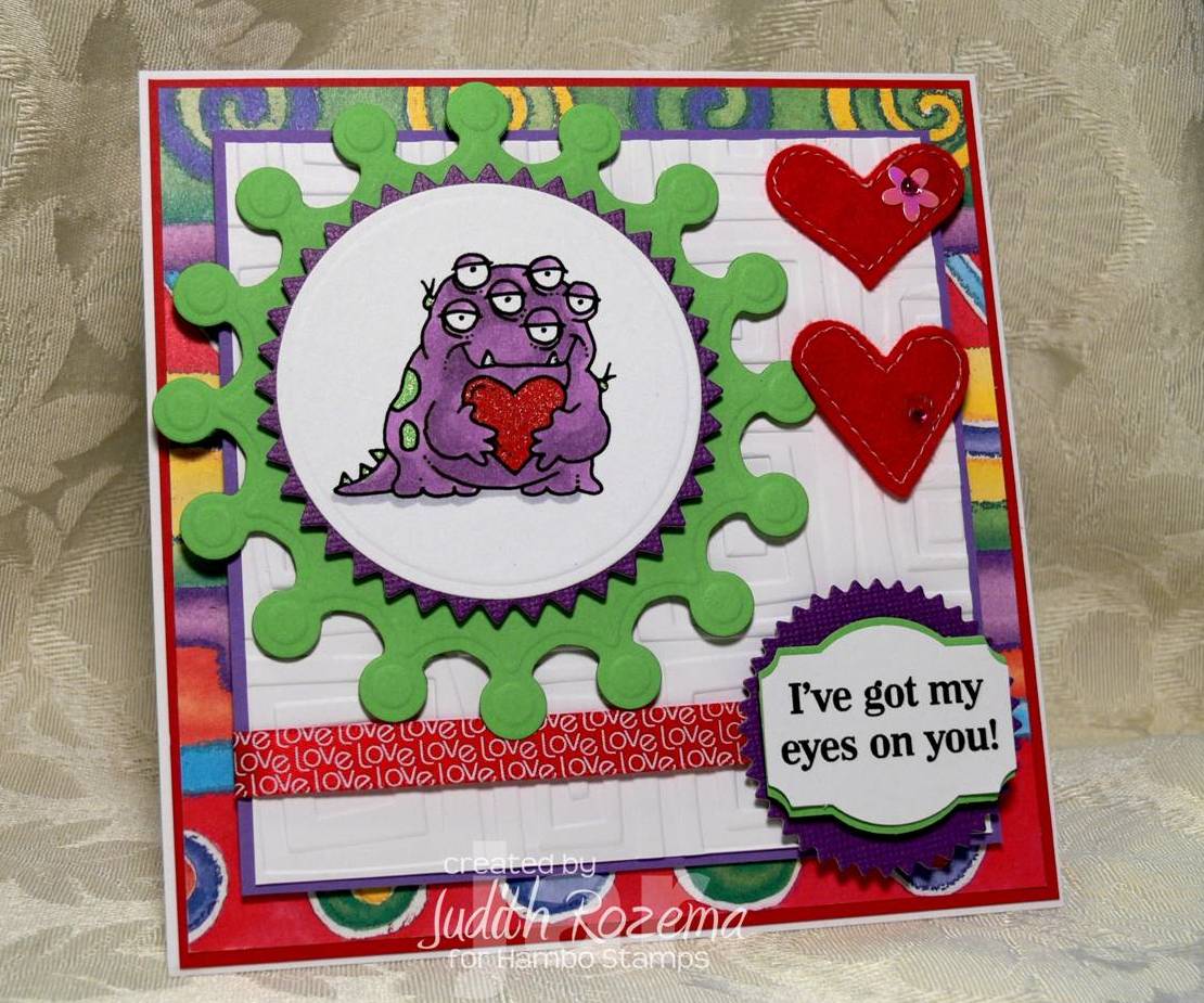 Head on over to the Hambo Hoedown, where this week's challenge is to use any Hambo image and a heart on your project! This week's freebie for challenge participants was this adorable Eye Monster digi and two sentiments. Check out what the Bacon Bits did with this cute guy HERE.