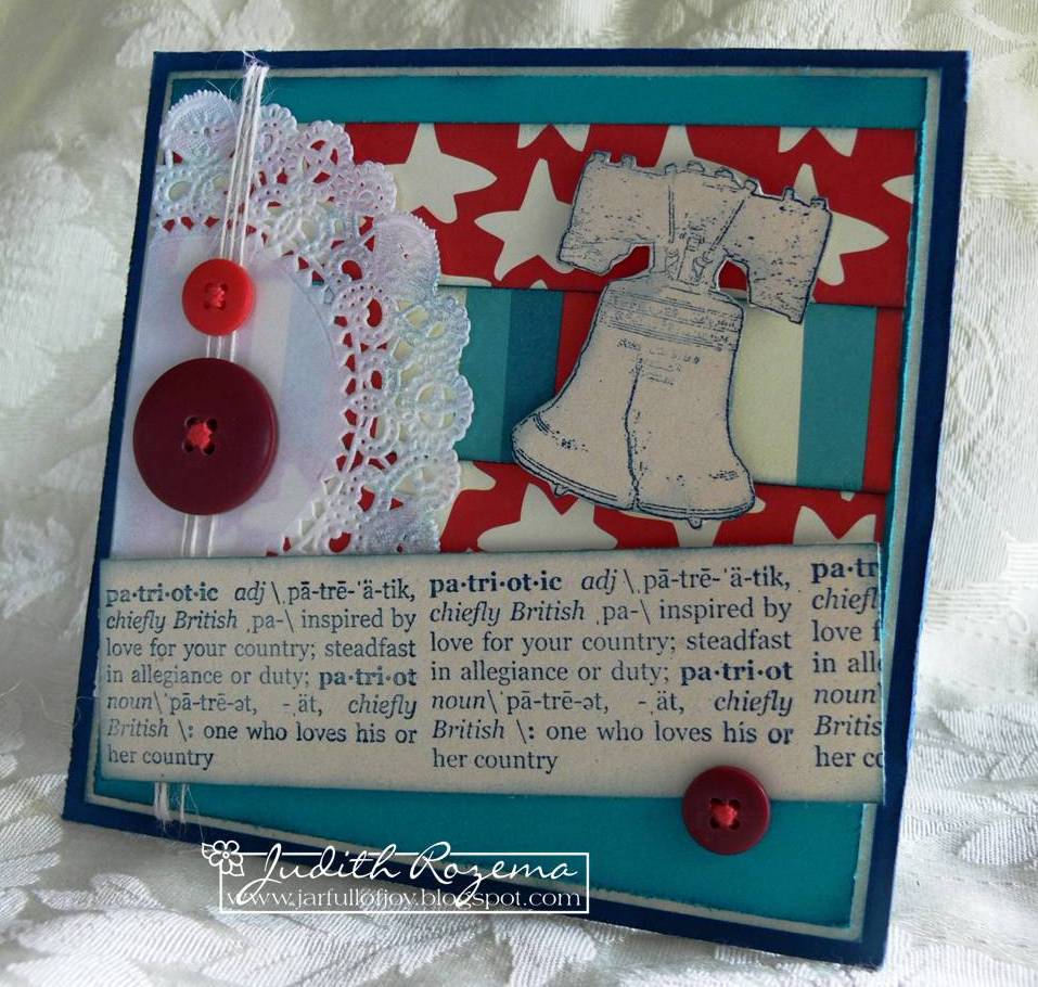 I stamped my images in Indigo Versacolor pigment ink and then embossed the Liberty Bell with Nautical Embossing Powder. I love patriotic cards!