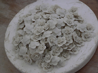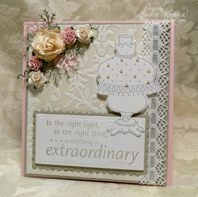 Accessories: double ruffled ribbon (Really Reasonable Ribbon), roses (Wild Orchid), paper flowers (Prima), embossing folder (Sizzix), pearls (Kaiser)