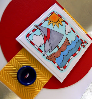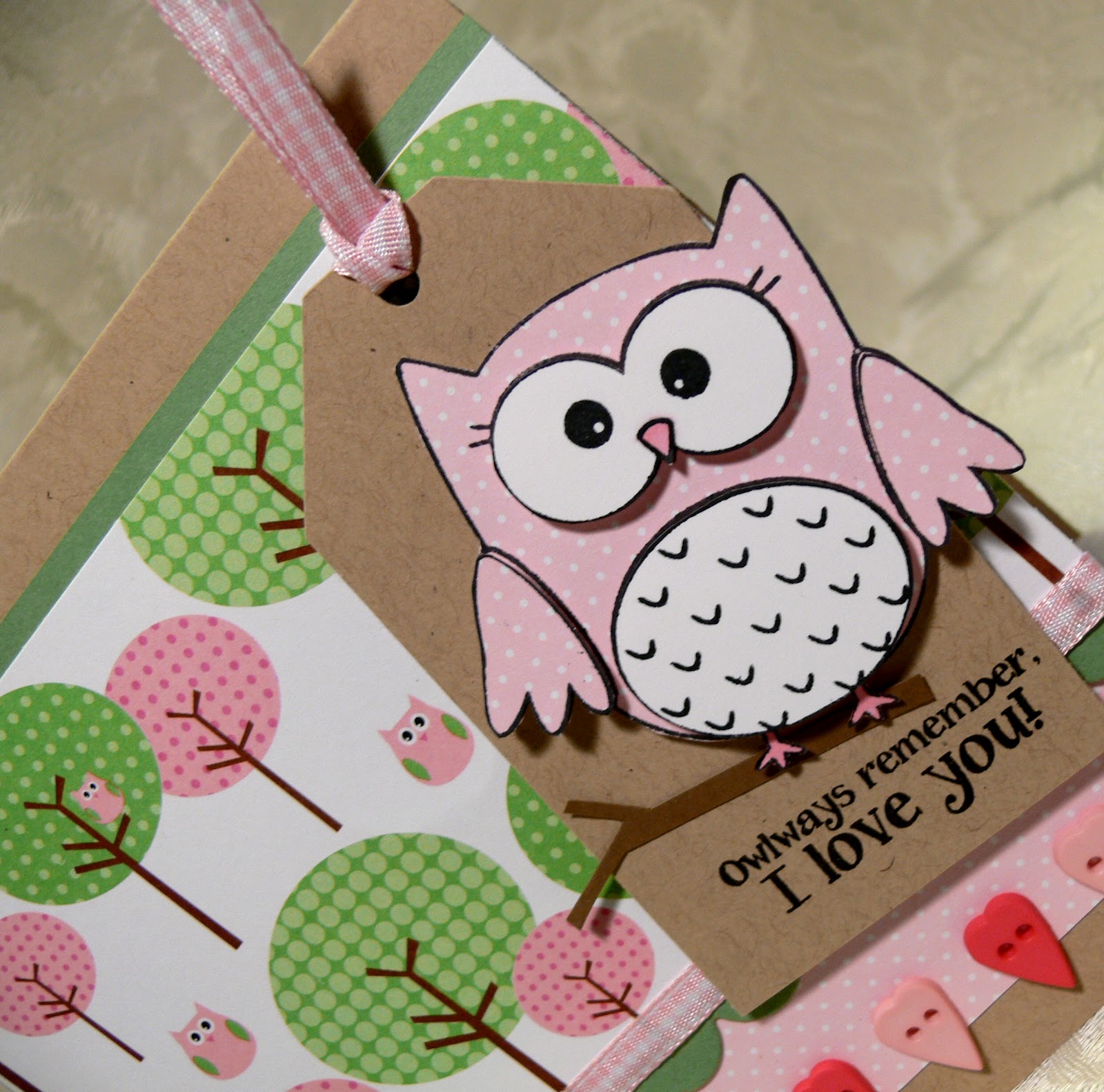 | Accessories: Baker's Twine (Hemptique) and Satin Chocolate Ribbon (May Arts), button (Basic Grey), Dots Embossing Folder (Sizzix) |