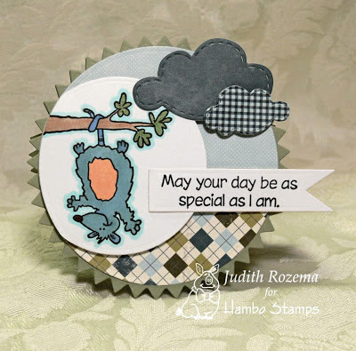 I used Possum - 4211 and Be As Special - 4210 for my images. I stamped in VersaFine Onyx Black ink, and then colored in using Copic markers. My designer paper is from the Loyal Collection by Authentique.