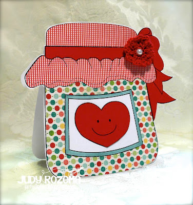 My banners are cut from Carta Bella's Beautiful Moments Collection kit, also at ihp. I stamped my sentiments in Cherry Cobbler and Basic Gray, and then cut with Spellbinders Labels Four Small. I sponged the outside of the frame with So Saffron ink. The little bird sticker is from the Carta Bella kit.