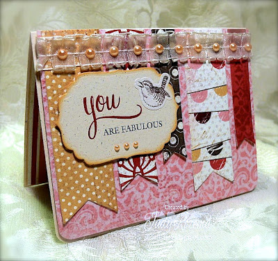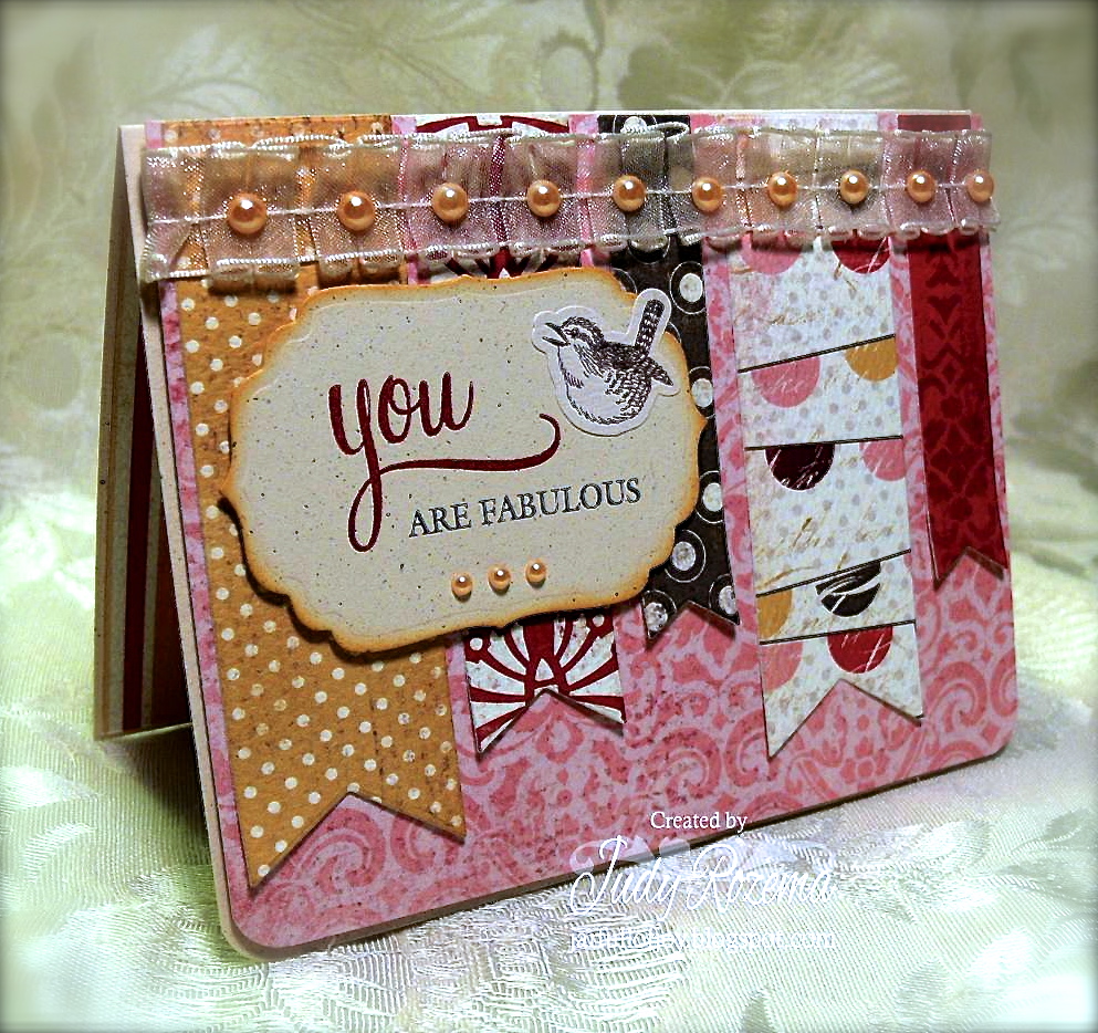 Accessories and Tools: corner rounder, Latte Pearls and Sheer Ivory Box Pleats Ribbon (Really Reasonable Ribbon), Spellbinders Labels Four Small (available at ihp), Banner Stacklets 1 (Taylored Expressions)