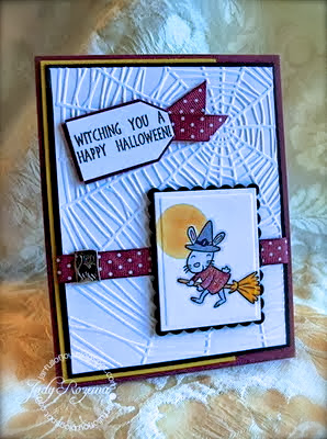 I turned the sketch on its side for my layout today. I started designing my card around Graphic 45's Steampunk Spells 6x6 pad. From there I chose a K & Co. glittery witch and bat die cut that I have had in my stash forever, and then added the cute sentiment from Chicken Girl Design's Happy Halloween stamp set. All my layers are held together with 1/2" Scor-Tape and popped up with Zva Dimensionals. Lot of layers and lots of fun! Linked supplies are available at i {heart} papers!