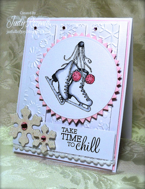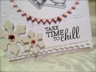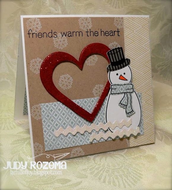 I love this sketch and will be using it a lot! Today I took a few liberties, and made the circle a chipboard heart, and the smaller circle my snowman. The banner turned into my ric ric "snow." For my card I chose Lawn Fawn's super cute Making Frosty Friends and coordinating dies - available at i {heart} papers!
