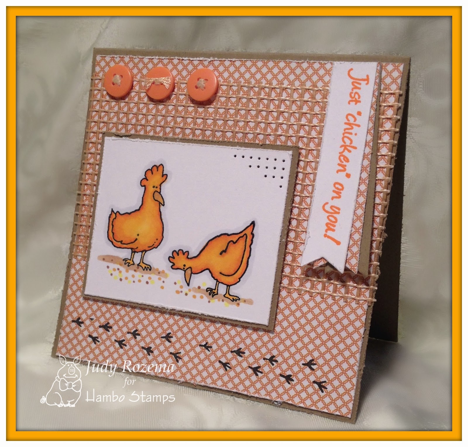 I had the pleasure of using the new Just To Say digital image. Isn't he adorable? I colored him with Spectrum Noir markers and then used Fancy Pants DP for my designer paper. A little crocheted flower, twine and some Teresa Collins enamel dots complete the card.