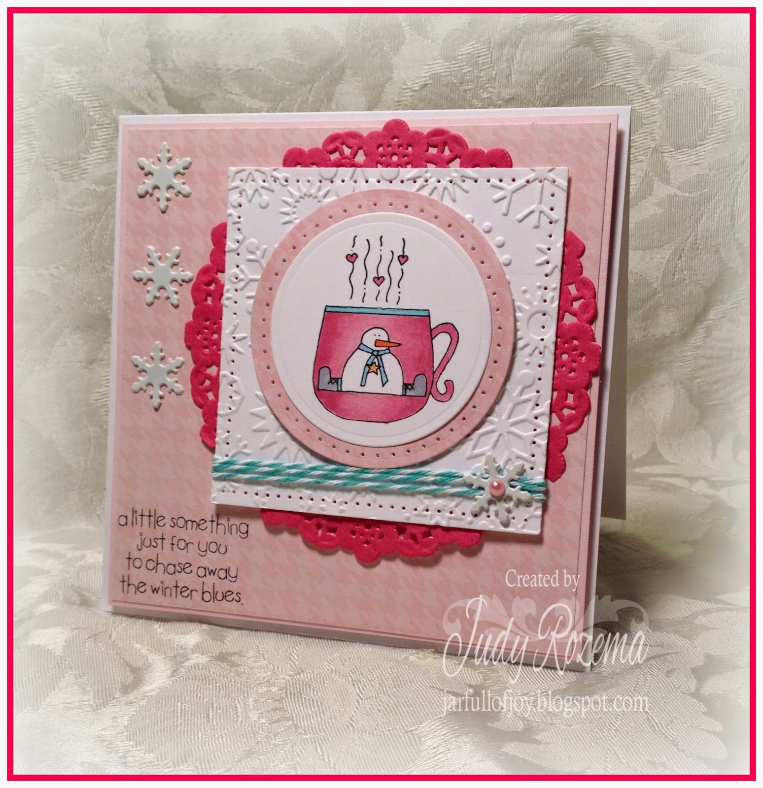 Got the Winter Blues? I do, as today I return home after several wonderful days in Utah and a late Christmas and New Year's celebration with my whole family. They all live so far away, so I don't get to see them often enough. So nothing better to chase away those blues than my favorite shades of pink and an adorable cup of snowman from Snowman Soup!