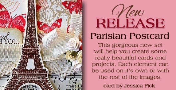 Can you find all the stamps from Parisian Postcard that I used in the card above?