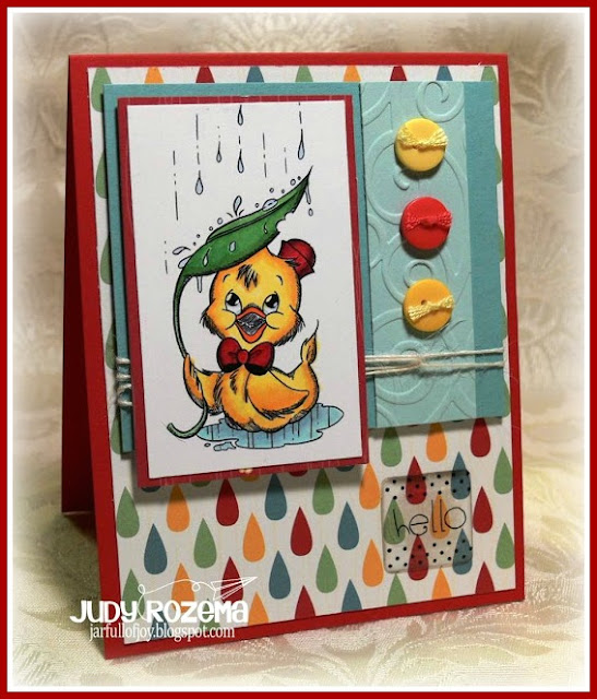 Anyway, who cannot be cheered by this little Duckie Rain? He just brings a smile to my face! He is a retired digital image from The Greeting Farm. With all our rain, I just thought he would be cute to see again and he is so fun to color!