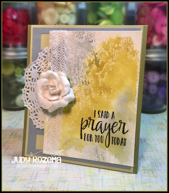 For my first project, I used a sentiment from My Heart Trusts. I love the font! I inked it up, and then restamped, because of the paper's texture. Two times stamping, and it came out perfectly!