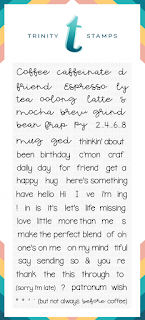 It's National Coffee Day! And Coffee Loving Cardmakers has a fab Sponsor hop to bring you some extra fun caffeine! Trinity Stamps is one of the sponsors, and the DT has whipped up some amazing ideas!