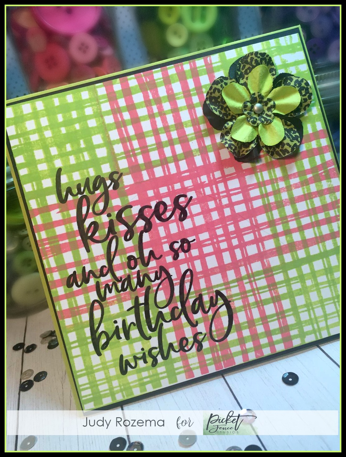 Rough Around the Edges is FUN! It's a large 6x6 background stamp that can have MANY looks. I decided to make my background a fun pink and green plaid.