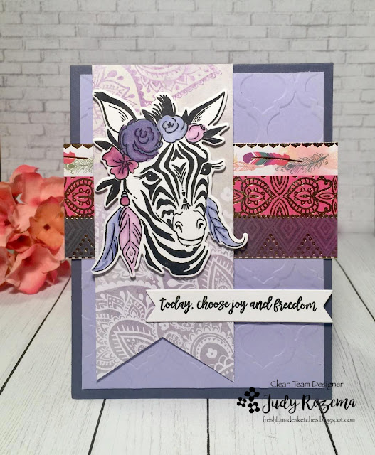 Once dry, I added some purple to the tips of a few leaves. My sentiment is from Ways To Say Get Well, and is embossed on vellum using Ranger Gold Embossing Powder. I tried many backgrounds for my succulent, including lots of fun patterned papers (which also looked awesome), but decided on a muted black textured background to highlight the image.