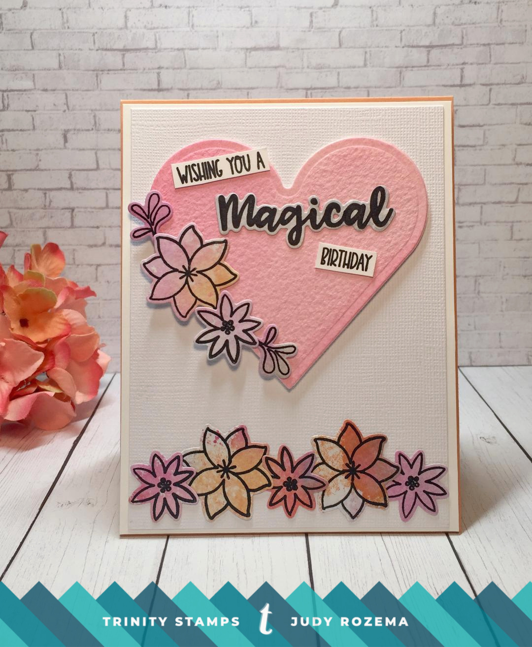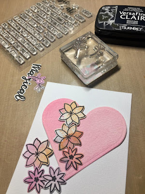 My sentiments are from Magical Sentiments. I layered my flowers along the bottom of the card, and on my heart.